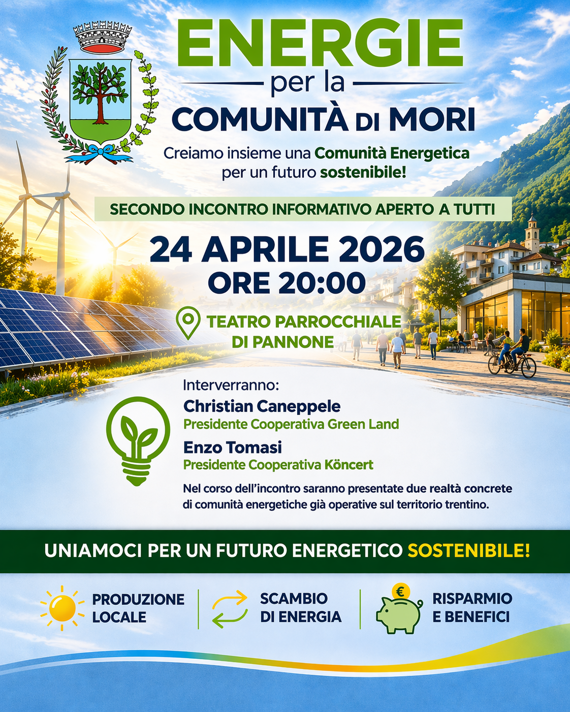 Nel corso della serata saranno presentate due realtà concrete di comunità energetiche già operative sul territorio trentino.