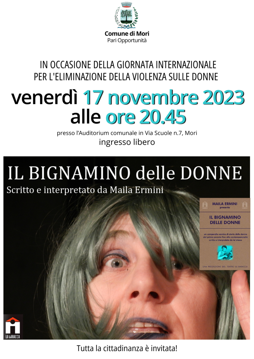 IN OCCASIONE DELLA GIORNATA INTERNAZIONALE PER L'ELIMINAZIONE DELLA VIOLENZA SULLE DONNE IL COMUNE DI MORI - PARI OPPORTUNITÀ PROPONE LO SPETTACOLO IL BIGNAMINO DELLE DONNE.